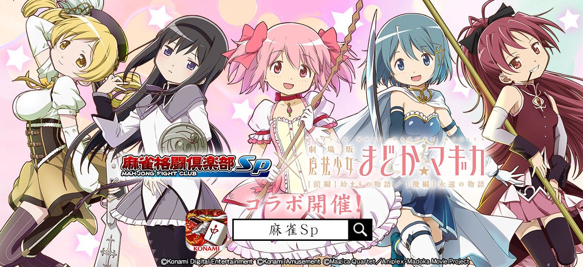 株式会社コナミアミューズメントは、モバイル麻雀ゲーム『麻雀格闘倶楽部Sp(マージャンファイトクラブエスピー)』と「劇場版 魔法少女まどか☆マギカ[前編]始まりの物語/[後編]永遠の物語」とのコラボイベントを、本日12月19日(月)より開催することをお知らせします。