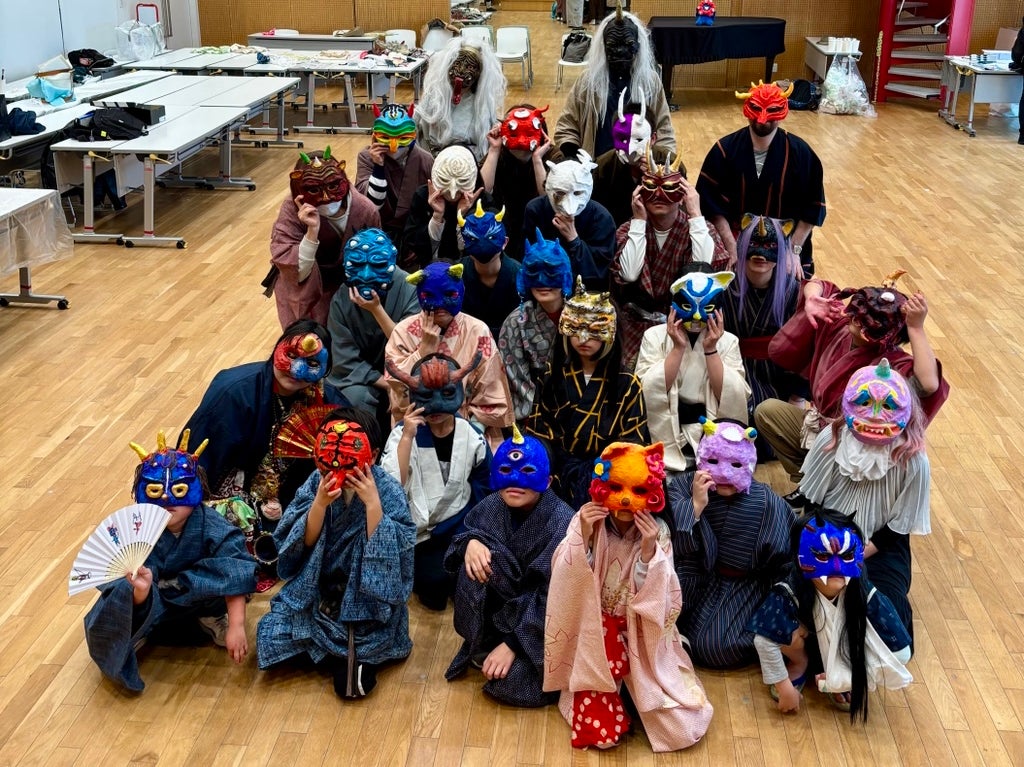 この万博出展に向けた特別企画として、福知山市内で3~4月にかけて「オリジナル鬼お面づくりワークショップ」を開催しました。市民や市にゆかりがある人が、百鬼夜行クリエイターの河野隼也さん指導のもと、本格的な鬼のお面を制作。「大江山酒呑百鬼夜行」にて着用し、鬼に扮して会場やその付近を練り歩きます。百鬼夜行の様子は、その後の京都ゾーンでも一部展示されます。さらに、2025年秋には「凱旋企画」として、日本の鬼の交流博物館で万博出展と連動した特別展の開催を予定しています。