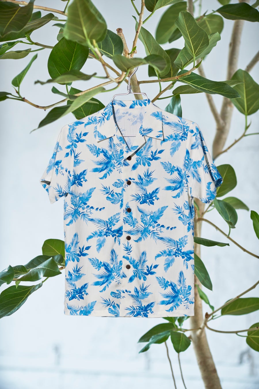 完全オリジナルデザインのアロハウェアはBreadfruit(パンの木)をベースにした柄を一から起こして制作。