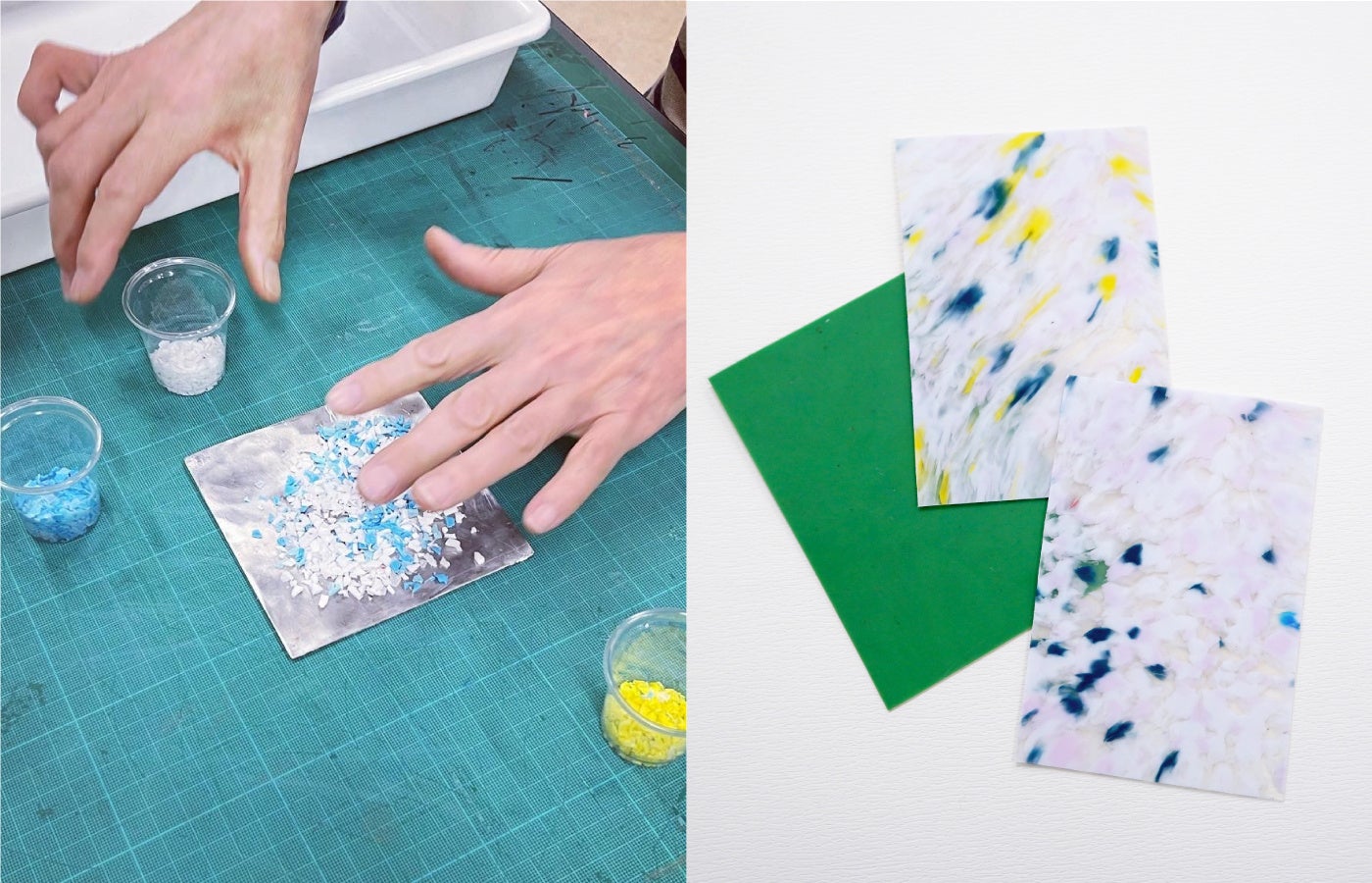 本展示では、ペットボトルキャップをはじめとした廃プラスチックを素材に制作したプロダクトを展示。活動への想いや、プロダクトが出来るまでの工程、さらに6月1・2日に行う無料ワークショップでお客様に作っていただいたシートの一部を使用して制作する「ランプシェード」などを展示します。