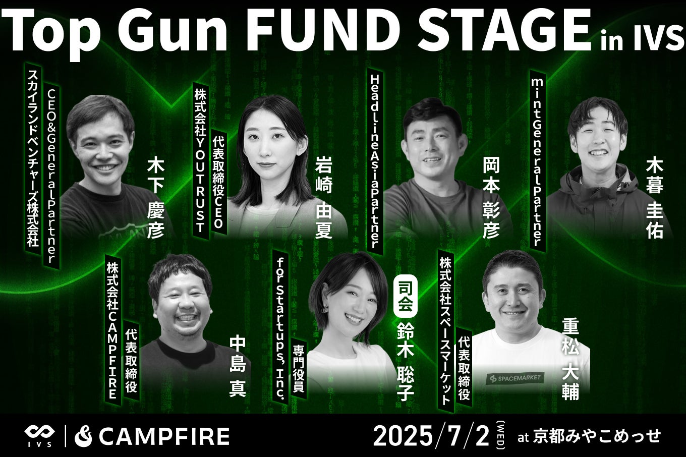 この度、IVS2025の目玉企画の一つである「Top Gun FUND」の登壇者8社が決定いたしましたので、お知らせします。