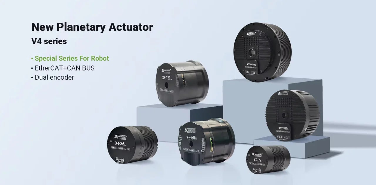 当社ではロボット向けに開発されたプラネタリギア採用のRMD-Xシリーズを2023年より販売しており、今回のRMD-X V4シリーズはその最新版。デュアルエンコーダーを搭載し、制御位置の向上、電源停止時の位置喪失を防止を実現しています。通信方式は、CAN BUSとEtherCATに対応しています。本体モデルにより異なる6種の取り扱いを開始します。