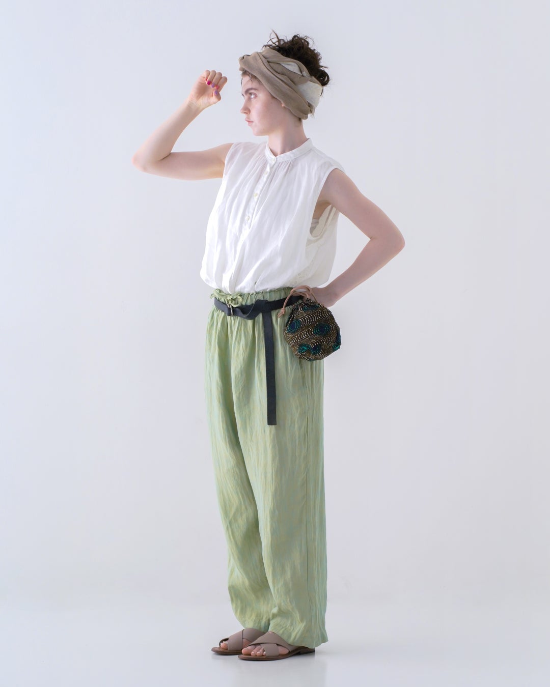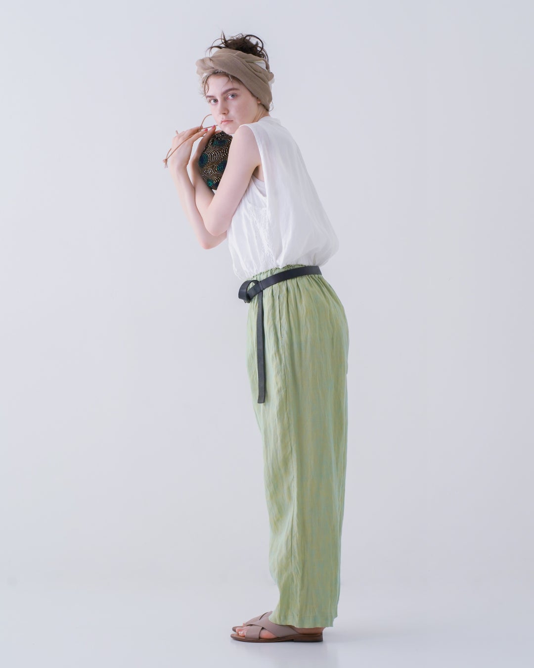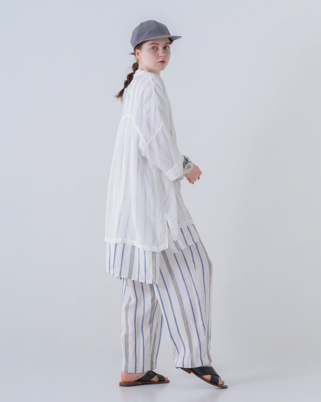 細く繊細なリネン糸で甘く織られたリネンガーゼ素材を使用。空気を含んだような軽やかな風合いが心地よい1枚です。
