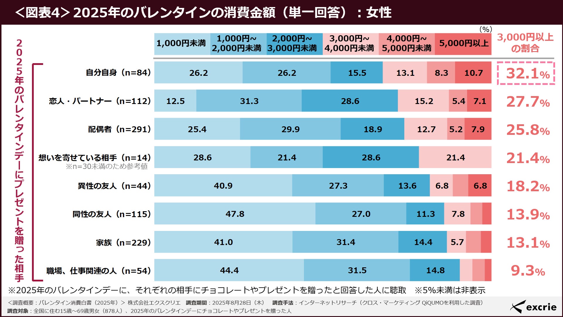 【バレンタイン消費白書(2025年)】女性の約半数が配偶者にプレゼント、10代は同性友人へ贈る傾向―エクスクリエ調査