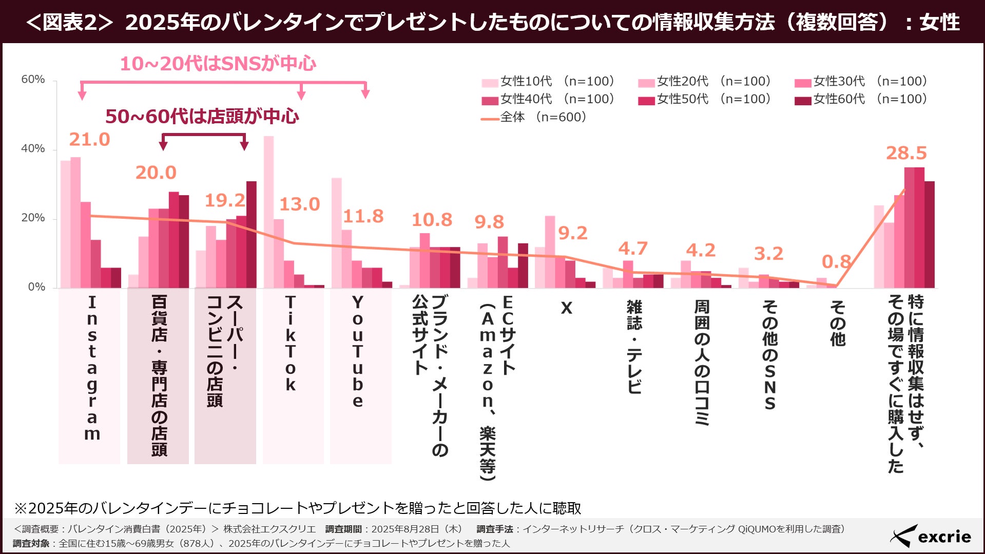 プレゼントについての情報収集:10~20代はSNS、50~60代は店頭が主流