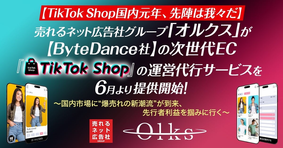 【TikTok Shop 国内元年、先陣は我々だ】 売れるネット広告社グループ「オルクス」が【ByteDance社】の 次世代EC『TikTok Shop』の運営代行サービスを6月17日より提供開始!