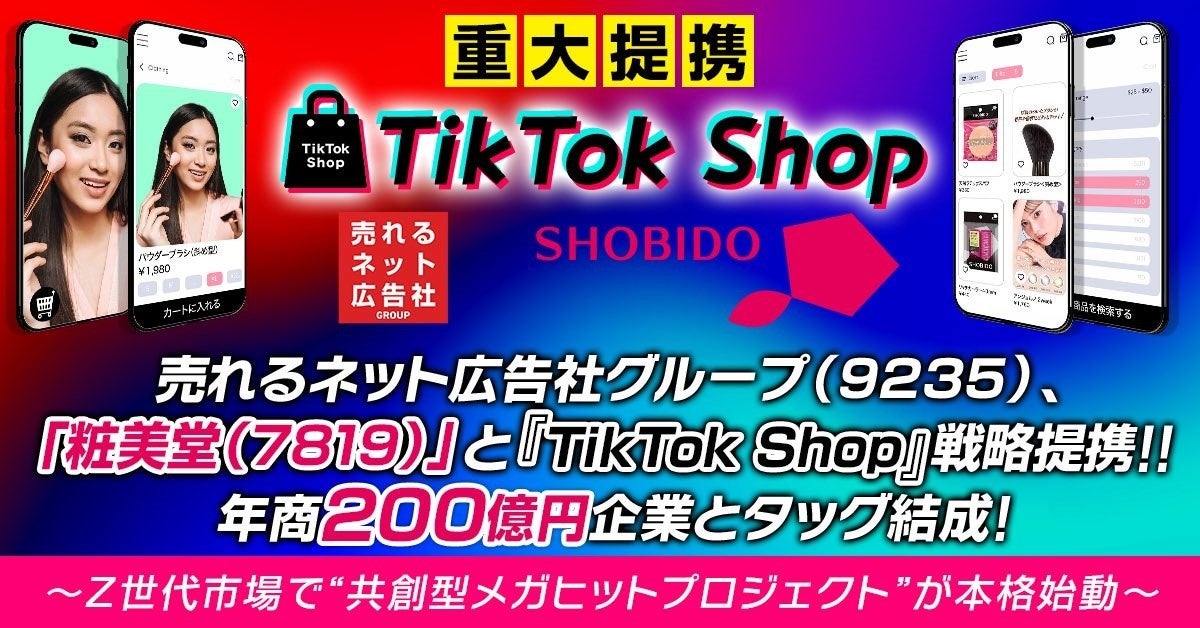 【重大提携】 売れるネット広告社グループ(9235)、東証スタンダード上場の美容大手「粧美堂(7819)」と『TikTok Shop』戦略提携!!