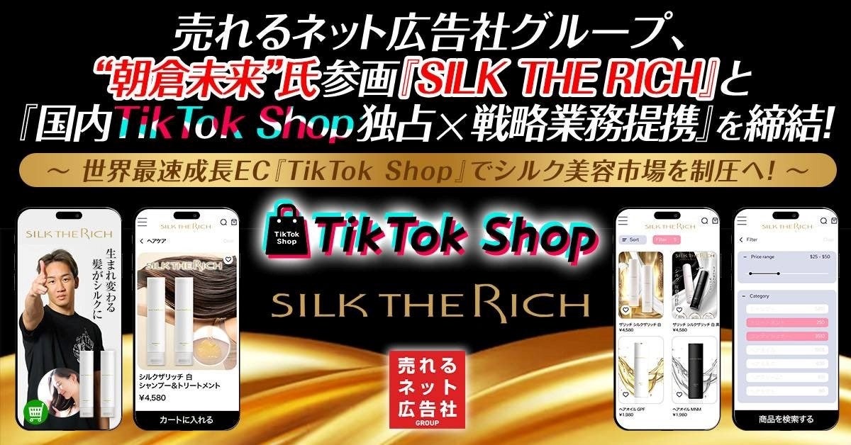 売れるネット広告社グループ、“朝倉未来”氏参画『SILK THE RICH』と 『国内 TikTok Shop 独占×戦略業務提携』を締結!