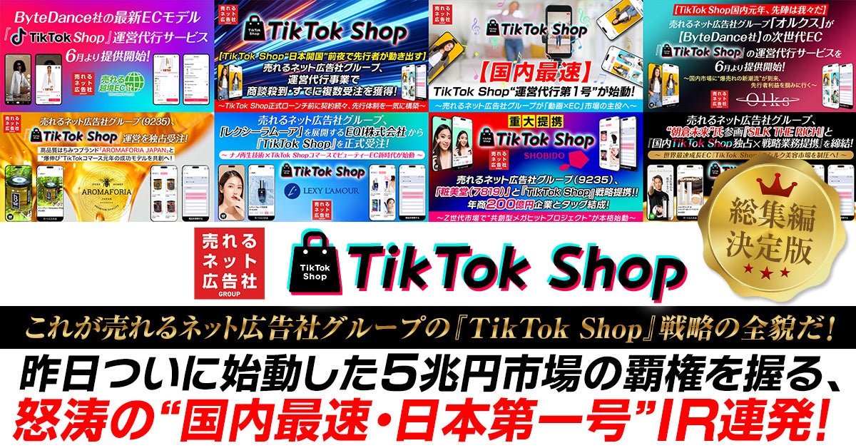 売れるネット広告社グループ株式会社(本社:福岡県福岡市、代表取締役社長CEO:加藤公一レオ、証券コード:9235、以下 売れるネット広告社グループ)は、昨日2025年6月30日にBytedance社より日本国内での本格展開が正式に発表された次世代型ECプラットフォーム『TikTok Shop』において、売れるネット広告社グループがいかにしてこの巨大市場の覇権を握るに至ったか、その戦略の全貌とこれまでの軌跡を総括する形で、本日開示いたします。