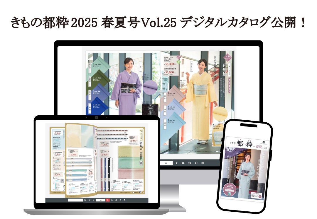 カジュアル着物のカタログ通販サイト「きもの都粋」では、2025年3月1日から紙媒体の最新カタログ「きもの都粋2025春夏号Vol.25」を頒布しておりますが、新たにWeb版の電子カタログをリリースいたしました。