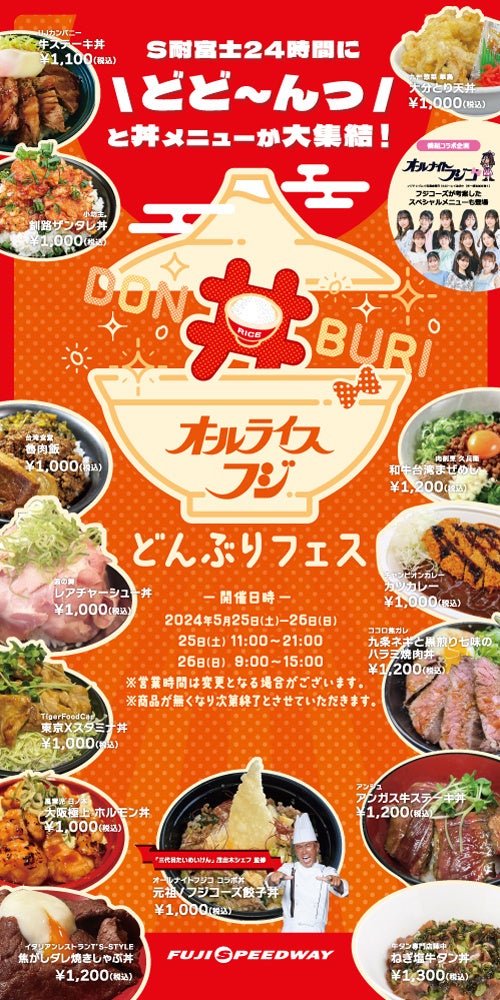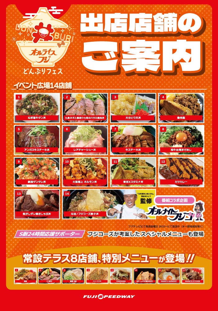 「S耐24時間レース”オールナイトFUJI“」全22店舗の“丼“メニューが\どどーんっ/と大集結!「オールライスフジどんぶりフェス」を併催!!