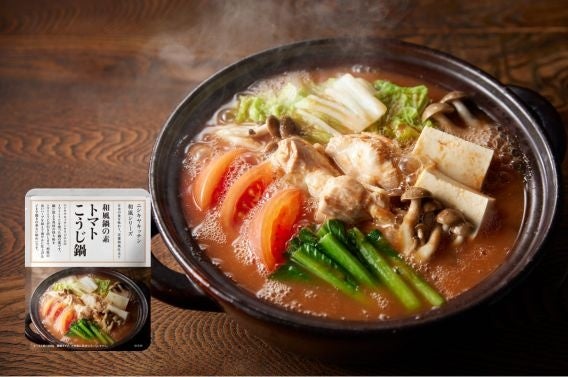 ・鍋に加える具材の持ち味をトマトこうじが引き出し、相性の良いハーブを加えて爽やかに仕上げた〆まで飽きの来ない味わい