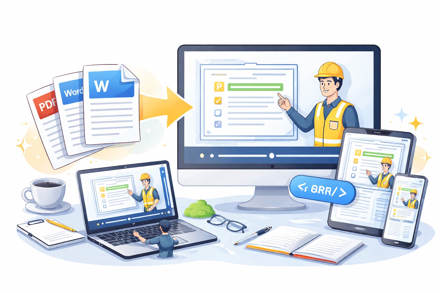 本セミナーでは、建設業の周知・教育で実際に出やすい題材(安全ルール改訂、入場時の説明、施工手順の更新)を想定し、次を扱います。