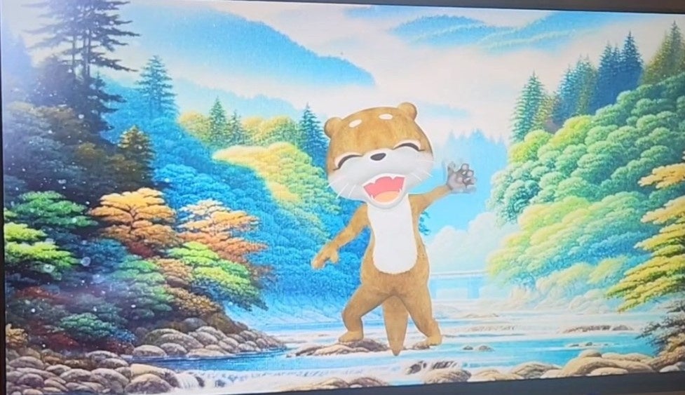 館内出口付近にATOAChater二ホンカワウソの「お景」とアカメアマガエルの「アンドレス」 が登場します。