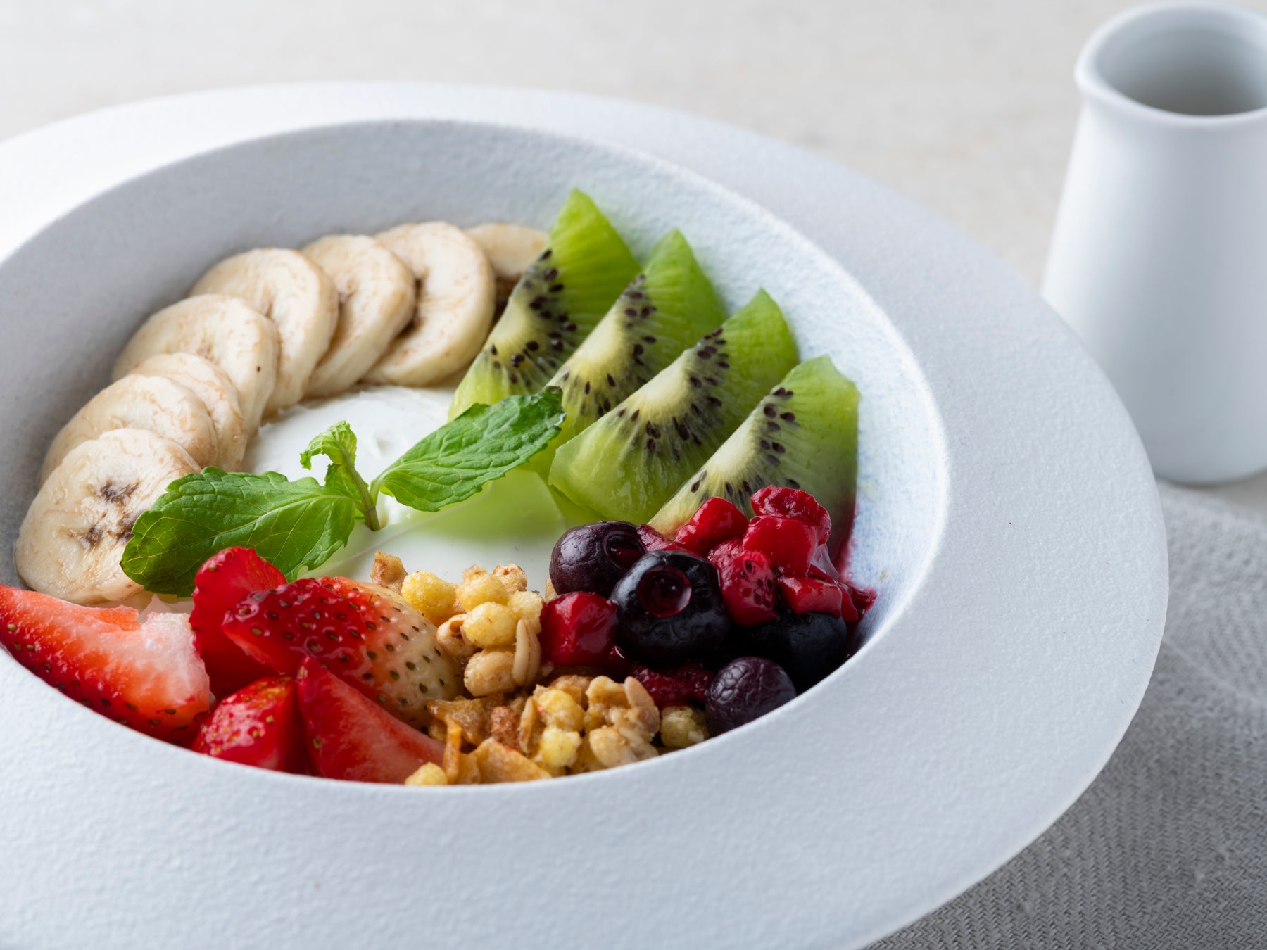 熊本県の石坂ファームで甘味料不使用・生乳100%で作ったグリークヨーグルト。高たんぱく、低糖質で腹持ちがいいので美容健康におすすめ。蜂蜜とフルーツを加えてデザート風に。