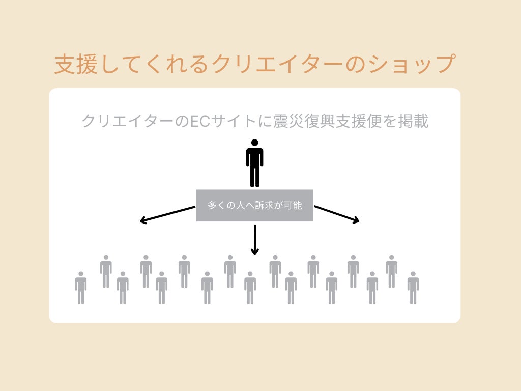「能登震災復興支援便」の取り組みに賛同してくれるクリエイターのECショップでも、能登の商品の販売を行います。