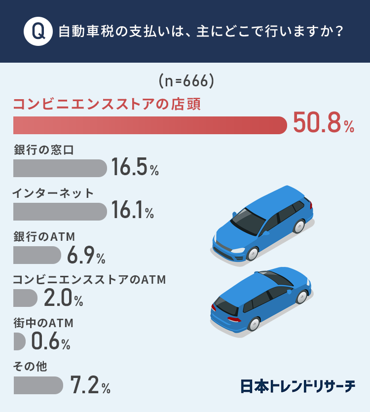 ■自動車税・軽自動車税、2人に1人が「コンビニエンスストアの店頭」で支払う