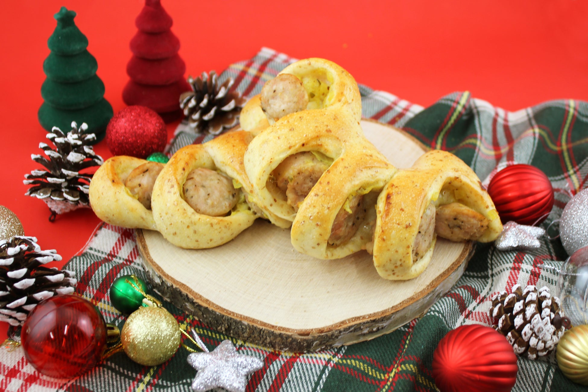 ライ麦全粒粉入りフランスパンに、ハーブソーセージとマスタード風味の玉葱フイリングを包み焼き上げました。一口頬張れば、香ばしい風味と、ジューシーなソーセージの旨味が口の中に広がります。ビールのお供にもおすすめです。