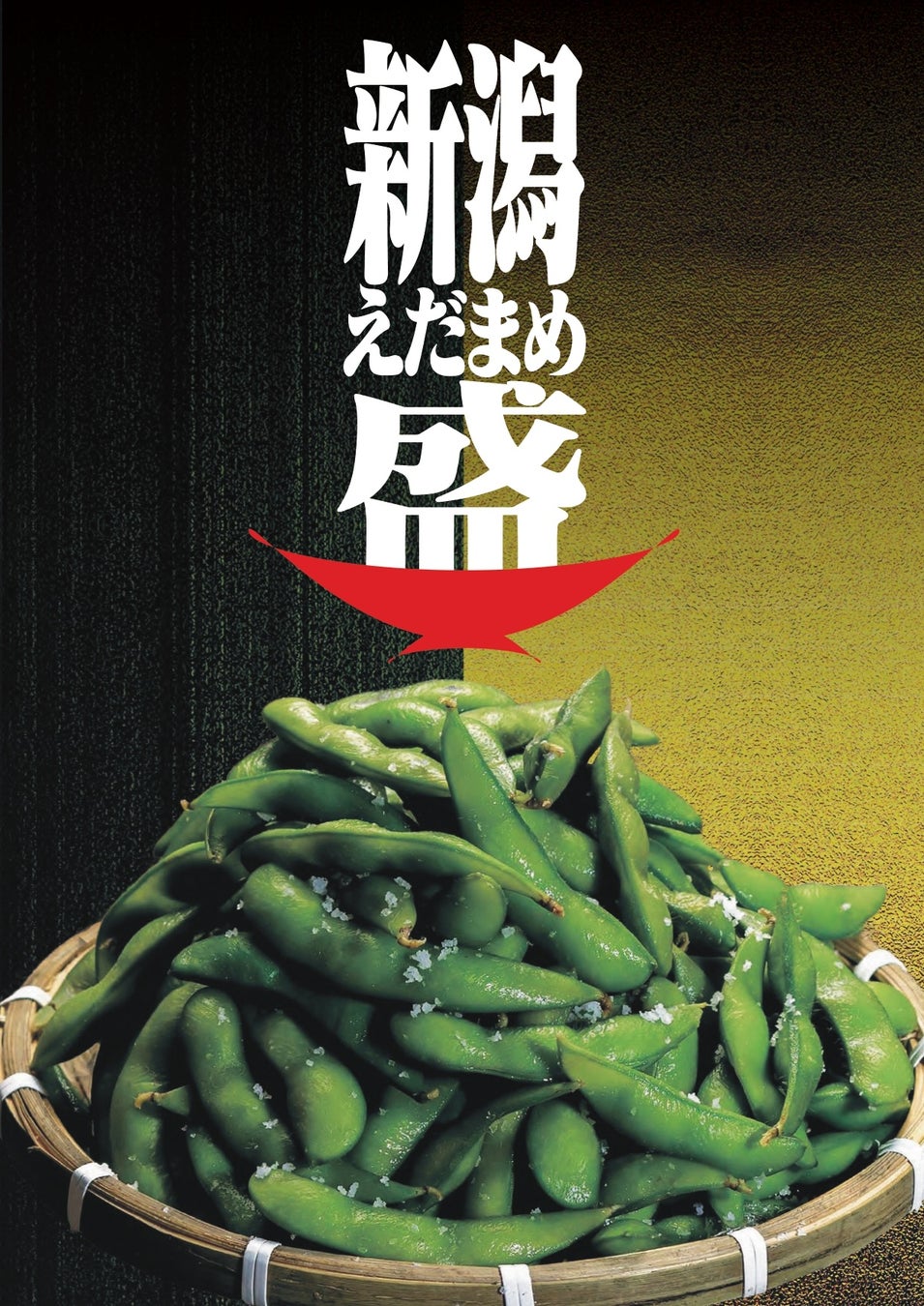 新潟では枝豆をざるいっぱいに盛って食べる「新潟えだまめ盛」が当たり前! 蒸したての長岡産えだまめとビールを一緒に楽しみましょう。