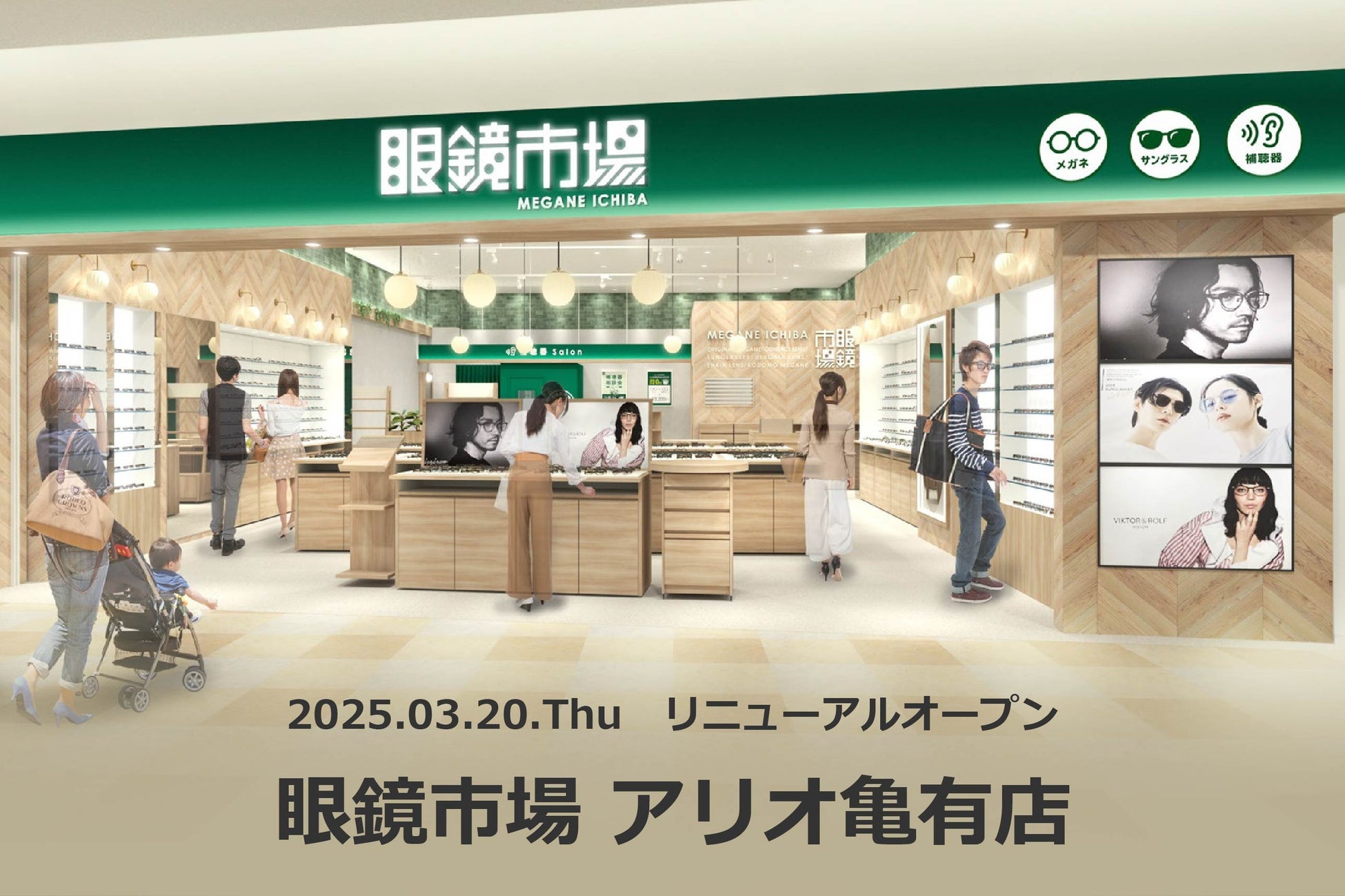 眼鏡市場は、東京都葛飾区にある複合商業施設「アリオ亀有」3階の「眼鏡市場 アリオ亀有店」を2025年3月20日(木・祝)にリニューアルオープンします。