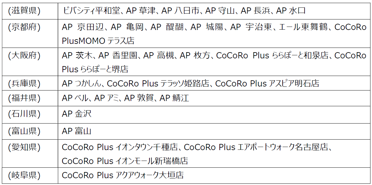※CoCoRo Plusの表記のない店舗は、平和堂グループが運営するSC内の店舗です