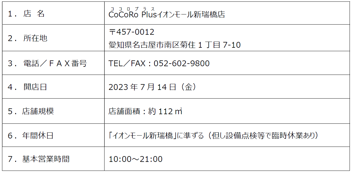 【「CoCoRo Plusイオンモール新瑞橋店」概要】