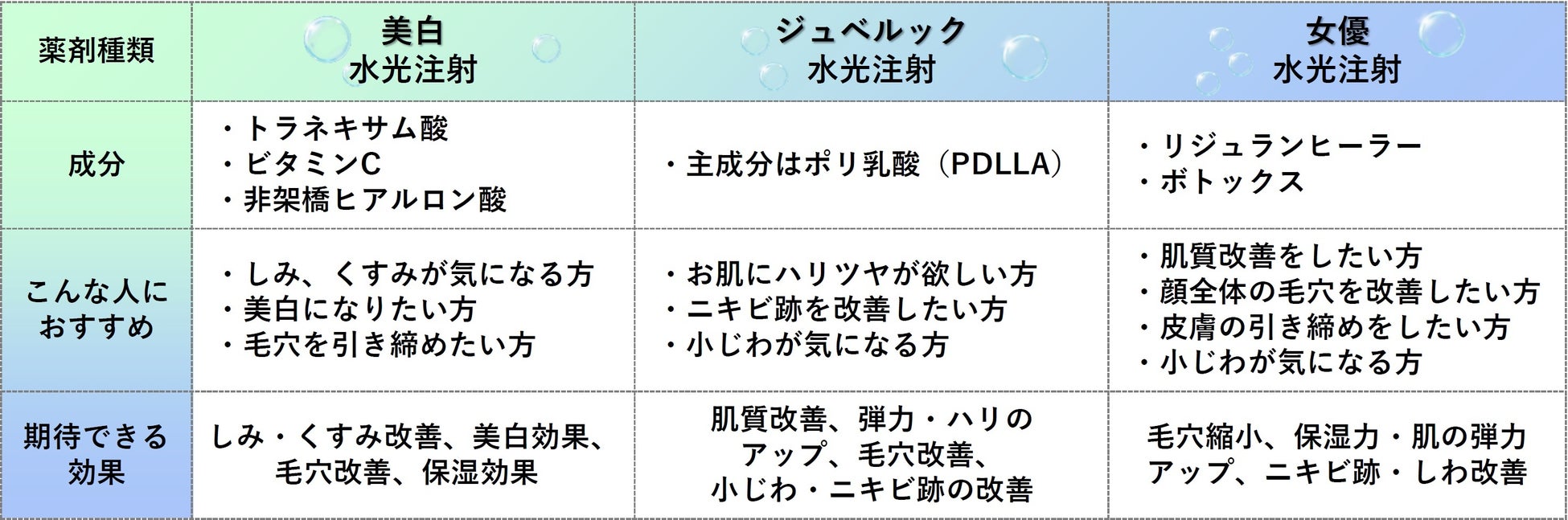 肌状態、悩み、目的に合わせて、複数の薬剤から選ぶことができます。