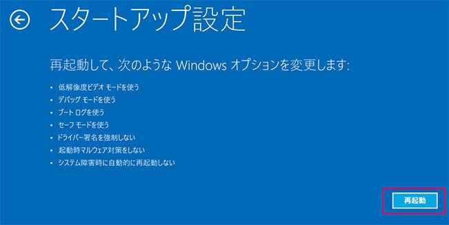 Step1:「詳細オプション」から「トラブルシューティング」を開いて「詳細オプション」を選択し、「スタートアップ設定」をクリックします。