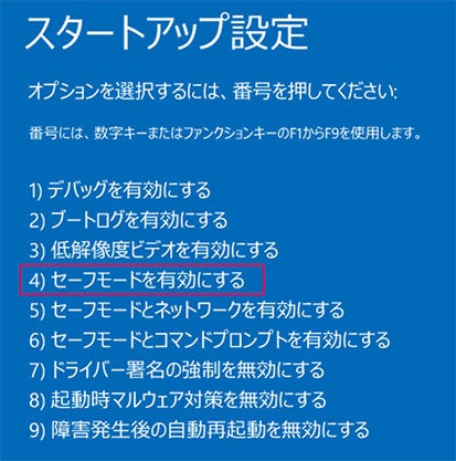 Step3:キーボードの「4またはF4」をクリックして、セーフモードを有効にします。