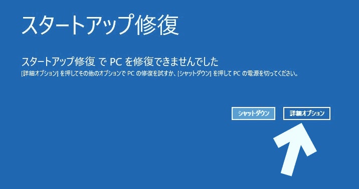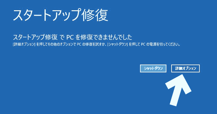 Step2:「自動修復」の画面が表示されたら「詳細オプション」をクリックします。