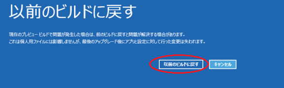 Step3:内容を確認して「以前のビルドに戻す」をクリックします。