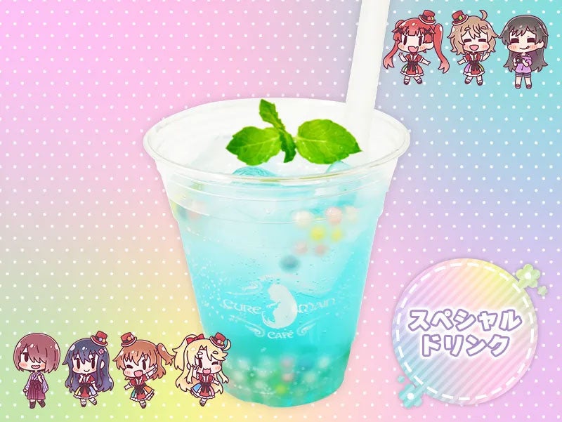 また、コラボドリンク1つご注文につき1枚プレゼントとなる【コラボ限定キャラクターカード(全7種)】や、キュアメイドカフェと同じオノデン本店4Fのイートインスペース「エンタス・キュアテラス」での場面写真展示など、『私に天使が舞い降りた!プレシャス・フレンズ』を劇場で見る前、見た後にもお楽しみいただけるコラボカフェとなっております。