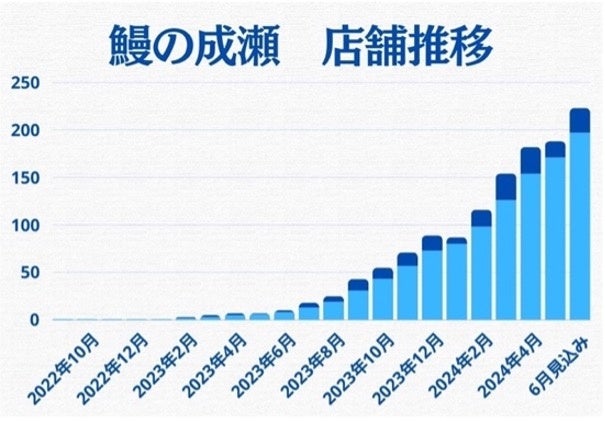 日本人が昔から親しんできた鰻重をもっと気軽にお腹いっぱい食べてほしいという思いから『鰻の成瀬 横浜店』を2022年9月にオープン。SNS上では「コスパ最強!」「値段の割に本格的」などのお声も頂戴しております。物価が高騰している今だからこそ良質で美味しい鰻をお手頃な値段で提供するべく、店内オペレーションのシステム化や営業時間を工夫することで人件費を抑える等して低価格を実現しております。おかげさまで、1号店のオープンから1年9ヶ月で200店舗を超える予定です。