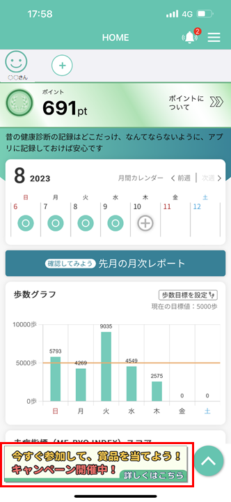 マイME-BYOカルテに登録後、アプリホーム画面下部のバナーからご参加ください。