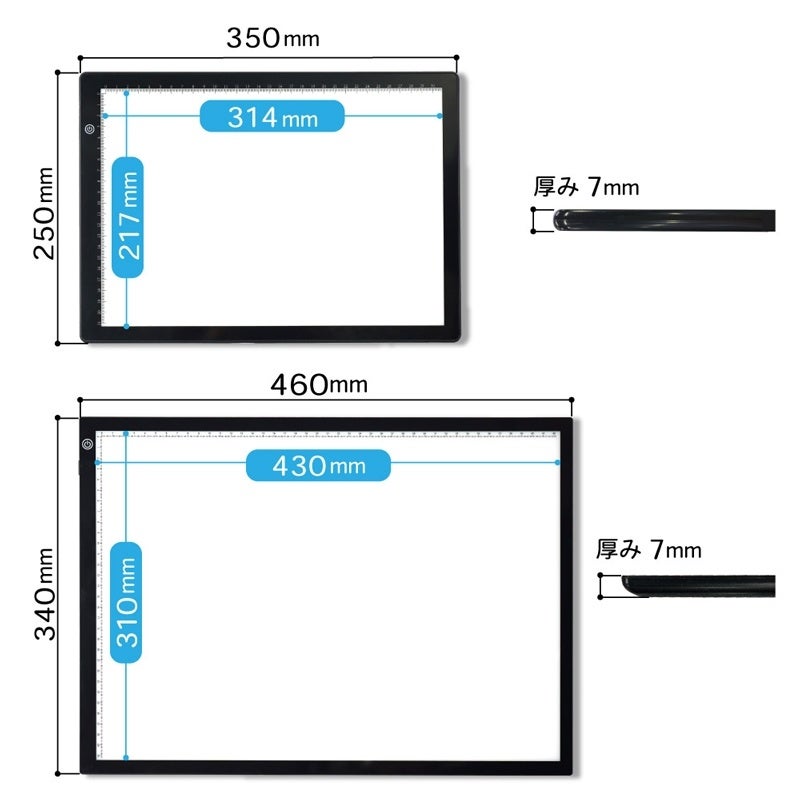 A3:幅460×高さ340×奥行(厚み)10(mm)