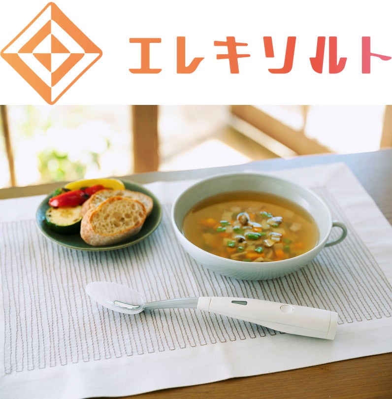 エレキソルトは、塩分を控えたスープやカレーなどの食事をおいしく楽しめるように、微弱な電流の力で減塩食品の塩味やうま味を増強※1する食器型デバイスです。