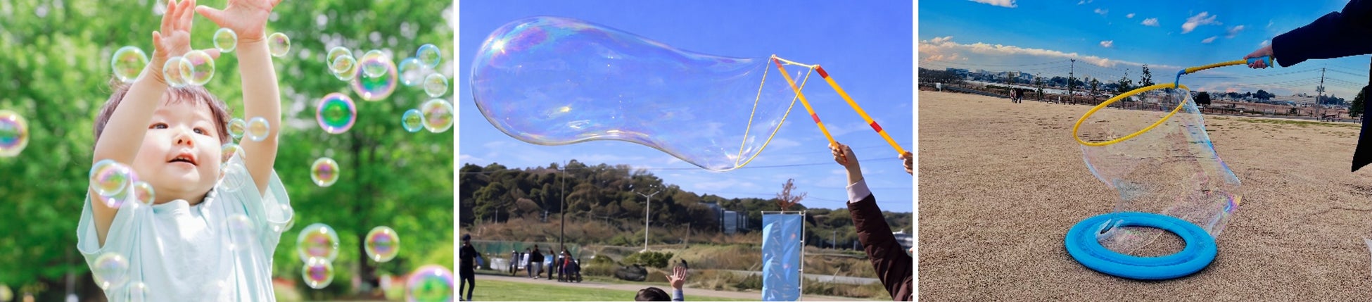 たくさんシャボン玉が出てくる”シャボン玉自動連射タイム”があったり、特大シャボン玉作りにもチャレンジできます!たくさんシャボン玉を作って思いっきり遊びませんか?