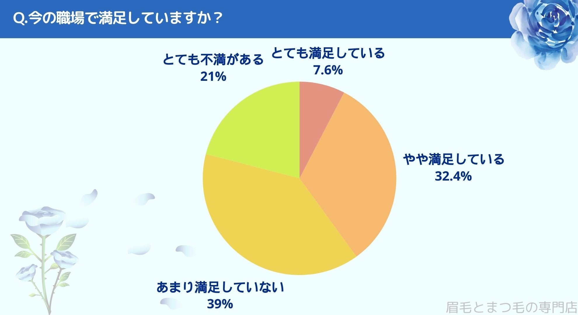 ・全体的には満足していますが、もう少し給料が上がるとさらに良いですね。仕事自体は楽しくやりがいもあります。