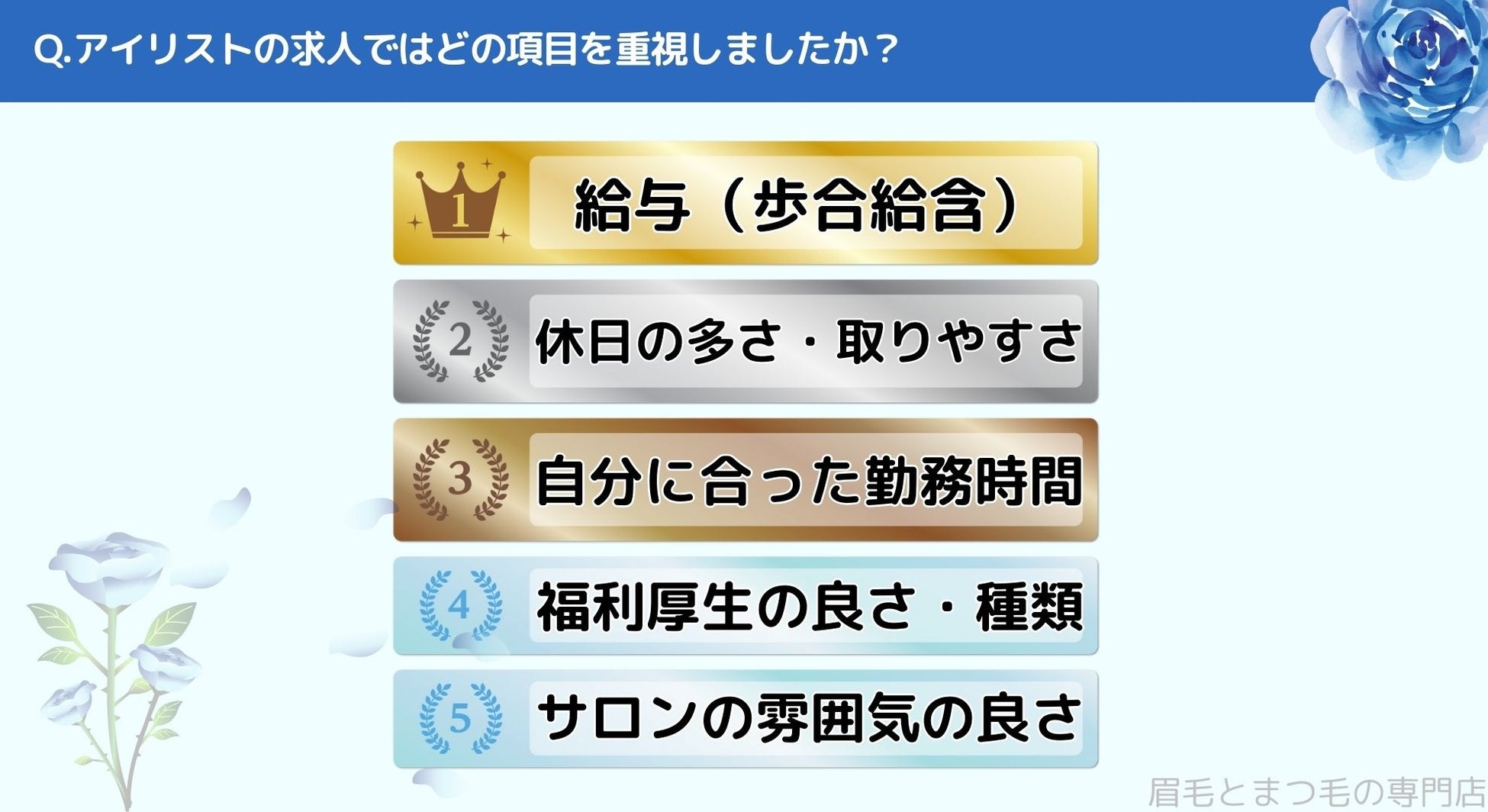Q1.アイリストの求人ではどの項目を重視しましたか?