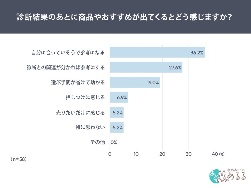 「診断結果のあとに商品やおすすめが出てくるとどう感じるか」を尋ねたところ、