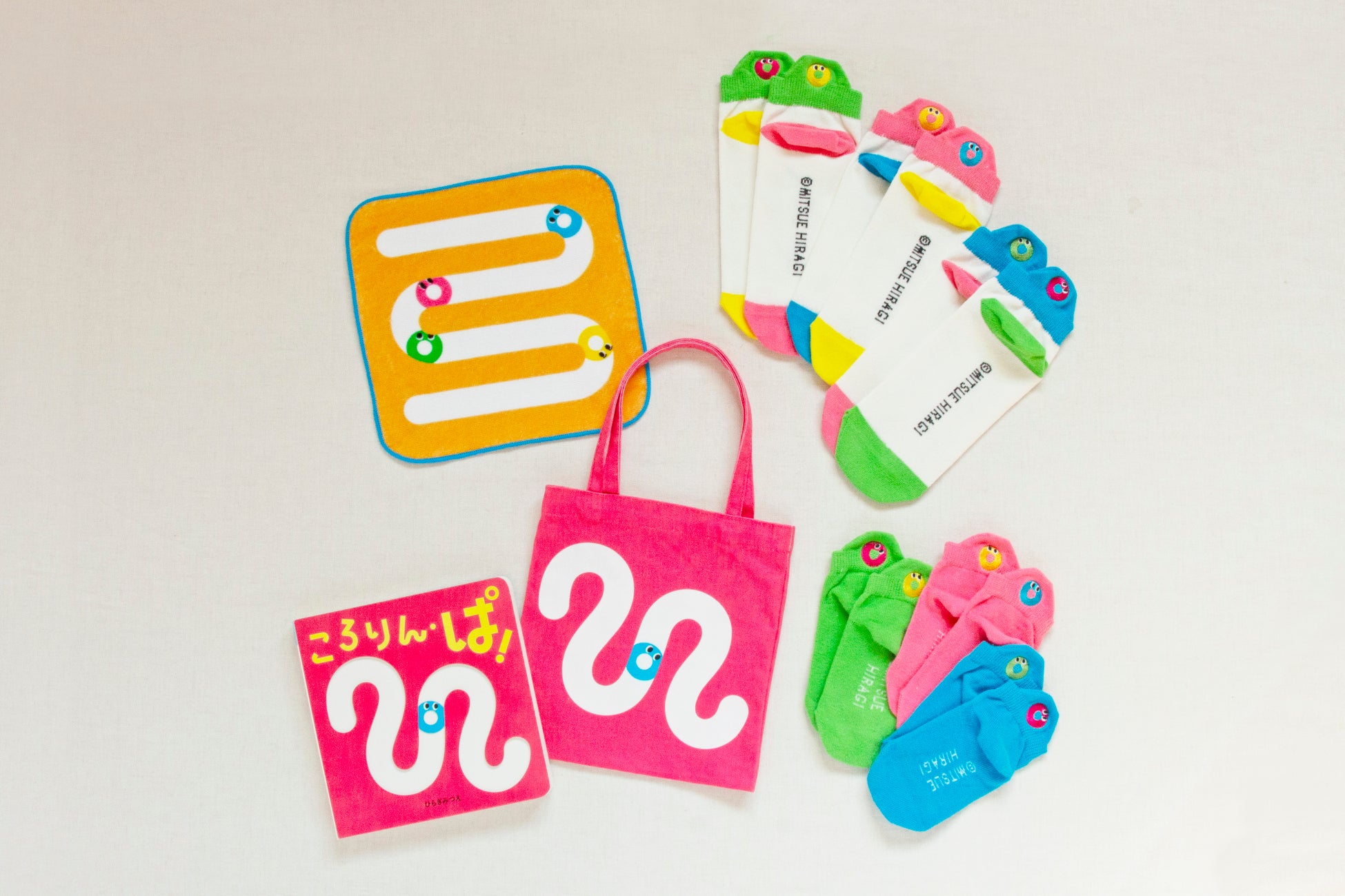 この度第二弾として発売するのは、絵本『お?かお!』『ころりん・ぱ!』から生まれた、赤ちゃんから大人の女性までが履いて楽しめる8種類のソックスです。