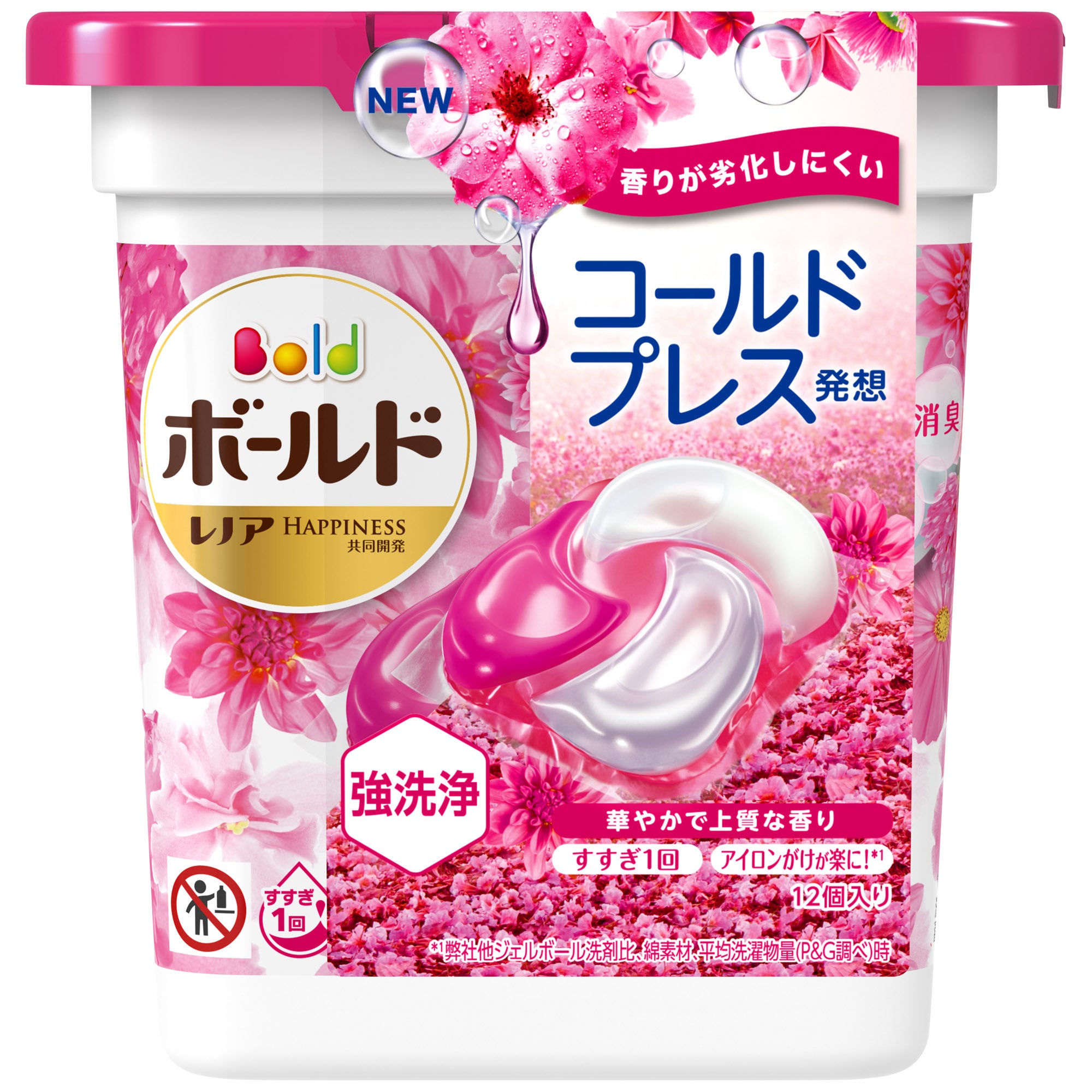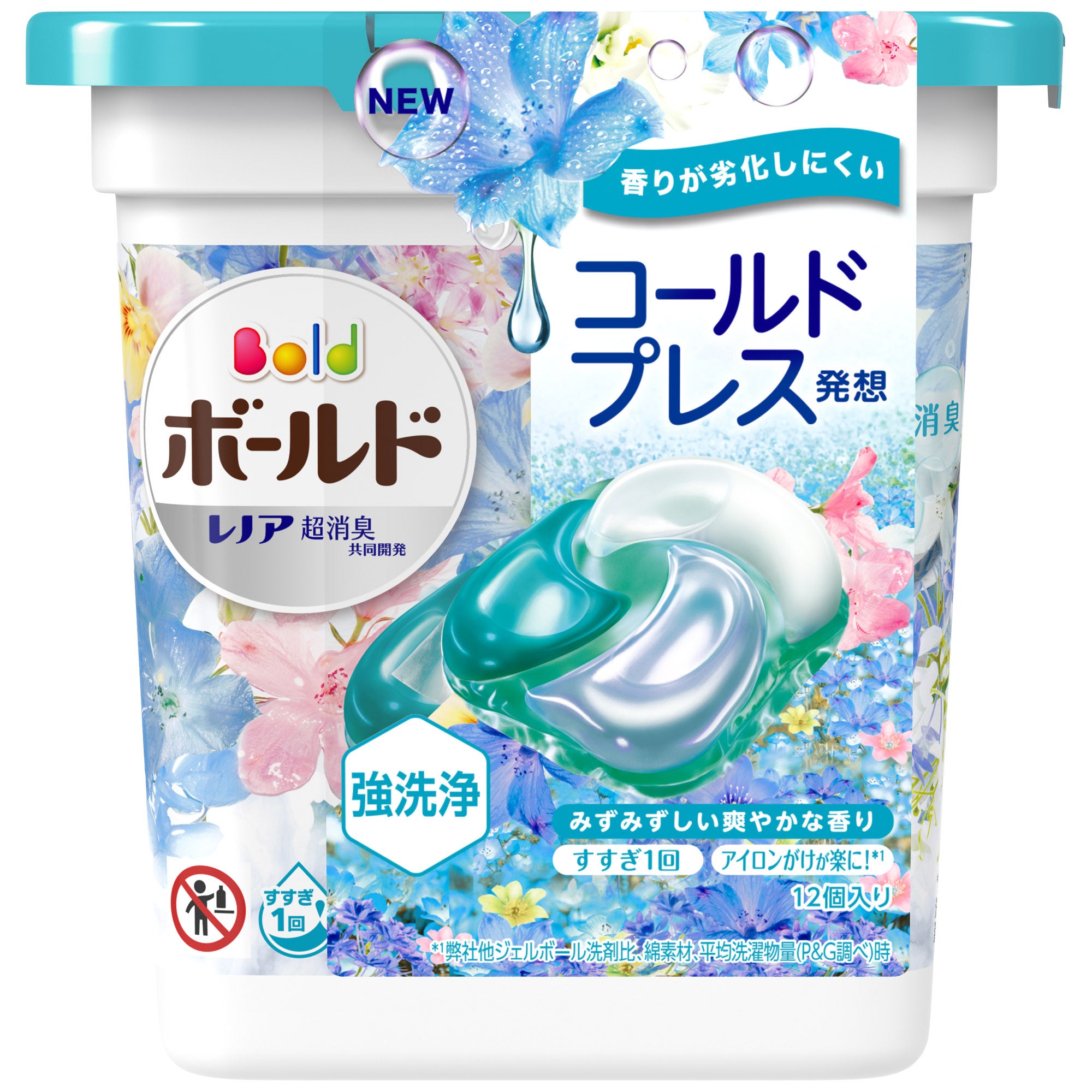 ジェルボールは、2014年に粉末、液体洗剤につづく第3の洗剤として市場に登場し、1粒を指でつまんで洗濯機に入れるだけという簡便性から、発売当初より好評をいただいております。2017年には、洗剤の成分を別々に閉じ込めることで成分の“鮮度”を保ち、洗う瞬間に混ざり合うことで、効果を最大限発揮する3層立体構造状の「ジェルボール3D」を発売。2021年2月には、①強洗浄、②柔軟剤入り、③高い消臭効果、④長続きする香り、の4つの機能を1粒に搭載した“4 in 1”(フォー・イン・ワン)の「ボールド ジェルボール4D」に進化をしました。特に「長続きする香り」においては、「コールドプレス発想」により、フレッシュな花のアロマを封じ込めた上質な“みずみずしい香り”が特長です。