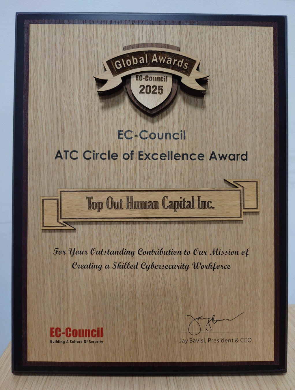 このたびTop Out Human Capitalは、「EC-Council ATC CIRCLE OF EXCELLENCE AWARD」を受賞いたしました。本アワードを4年連続で受賞できたことを大変光栄に思うとともに、当社のトレーニング品質と受講者の皆様からの評価が継続的に認められた結果であると受け止めております。