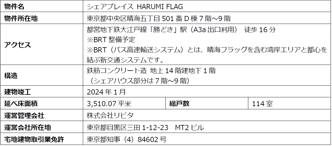 シェア型賃貸住宅『シェアプレイス HARUMI FLAG』法人向け入居受付を開始