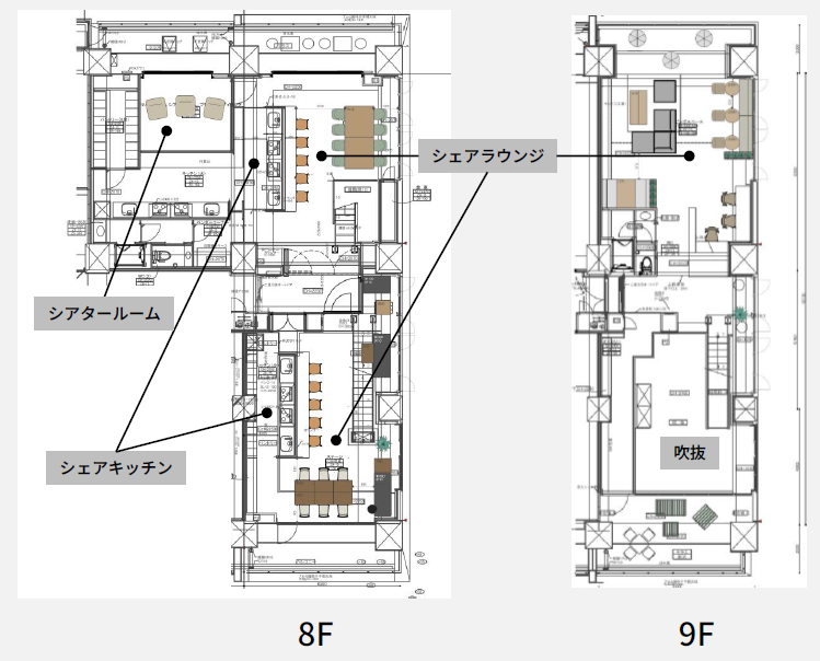 8F・9Fに毎日の生活を豊かにする、3つの共用スペースをご用意しております。