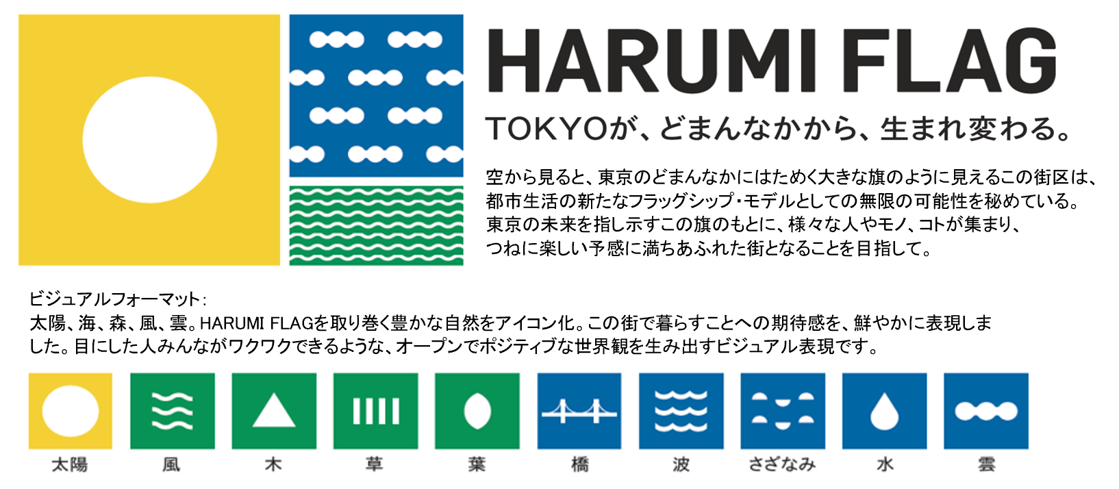 晴海五丁目西地区第一種市街地再開発事業の特定建築者11社(※)によって開発されている 「HARUMI FLAG」は、約13haの広大な土地に、5,632戸の分譲住宅・賃貸住宅と商業施設の合計で24棟を建築するほか、保育施設、介護住宅、シェアハウスなどを整備し、多様なライフスタイルを受け入れる人口約12,000人の街づくり計画です。