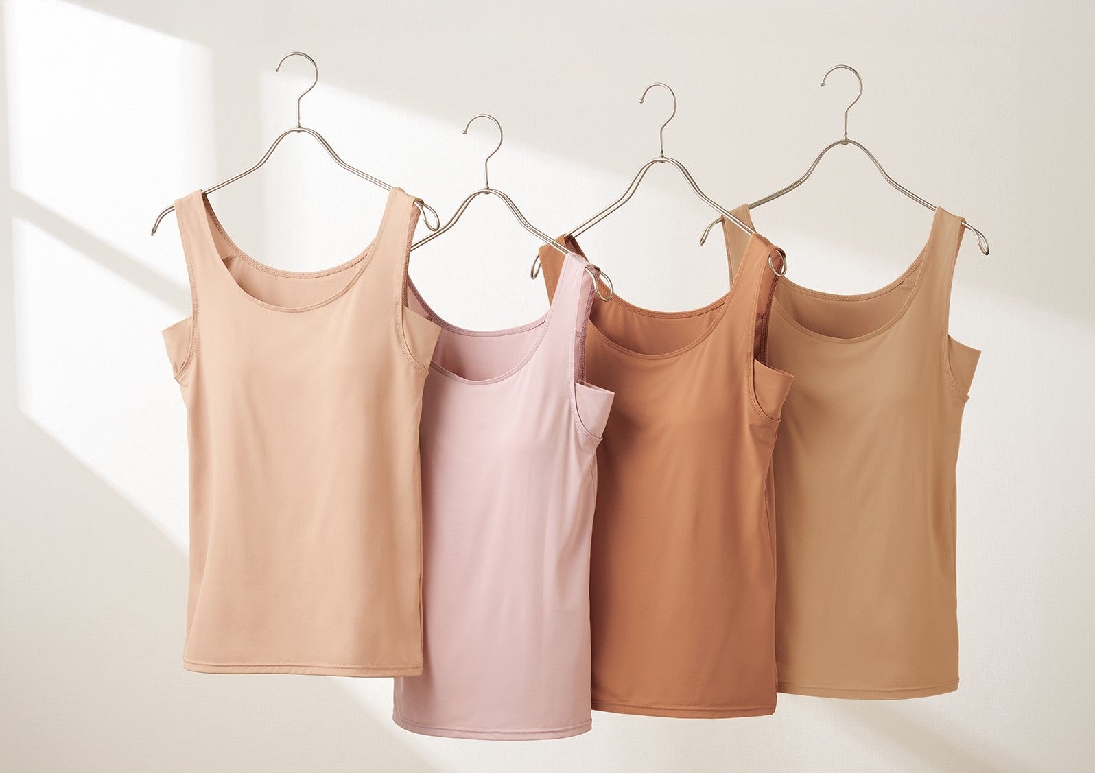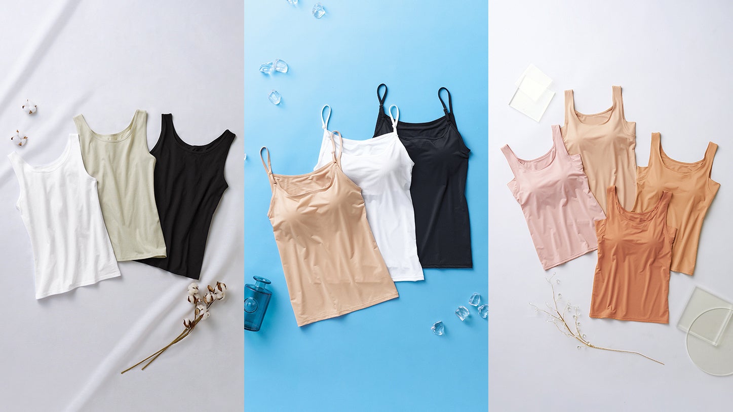 昨年の発売からご好評をいただいている「透けにくいインナー」にカップ付きタイプが登場。肌のトーンや色味に合わせて選べる、透けにくいカラーの4色展開です。