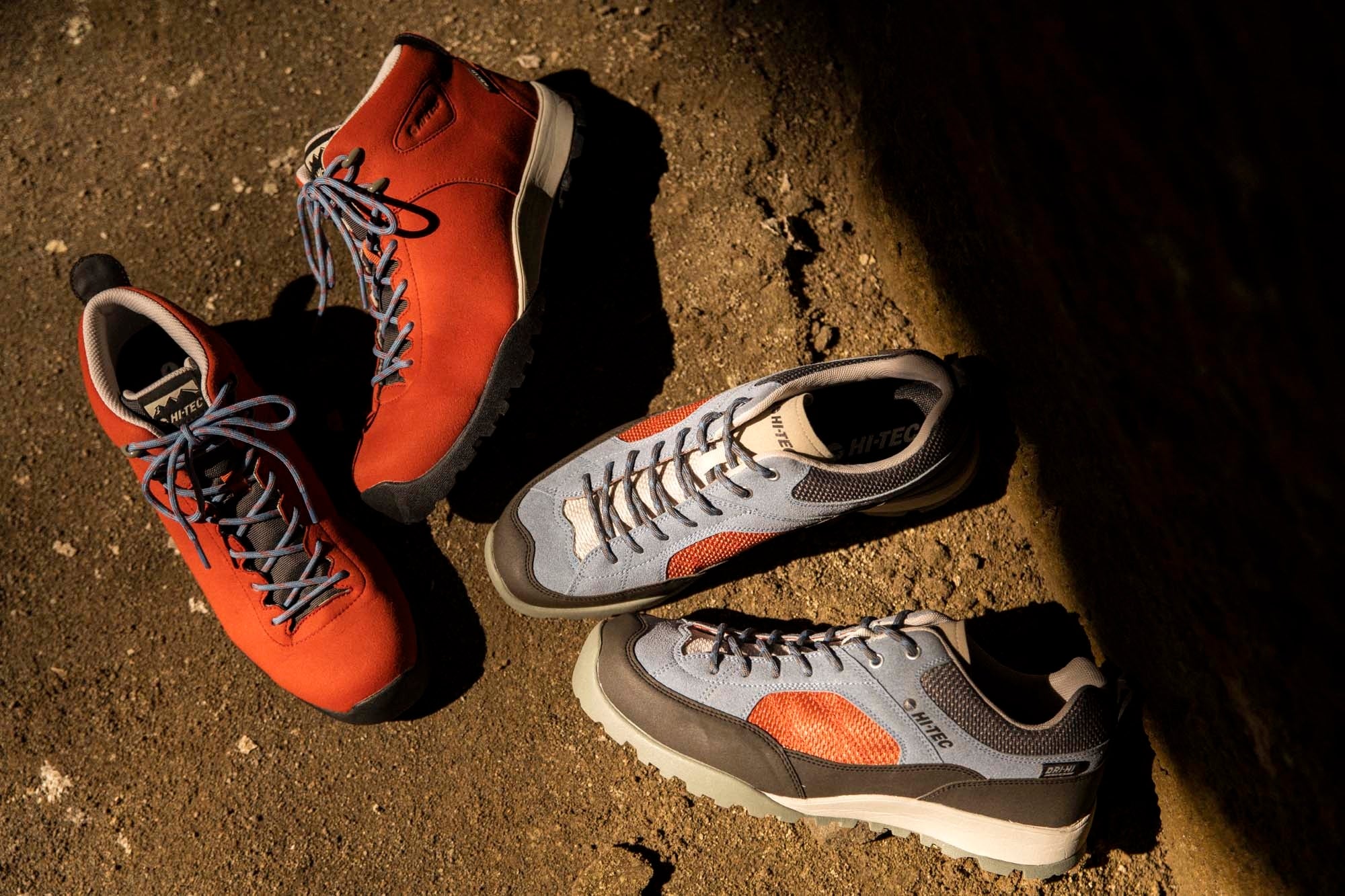 HI-TECはスカッシュシューズをルーツとして、1974 年にイギリスで誕生しました。78年に発売したハイキングシューズ「シエラ」は、それまで重くて当たり前であったアウトドアシューズに” 軽量” という概念を持ち込み人気に。アウトドアブームが到来しつつあった当時の日本でも大きな話題となりました。以来、ランニングシューズの開発やイギリス軍へのトレーニングシューズの支給など、創業から約半世紀に渡り世界各国のアウトドアファンに愛される名作を生み出しています。