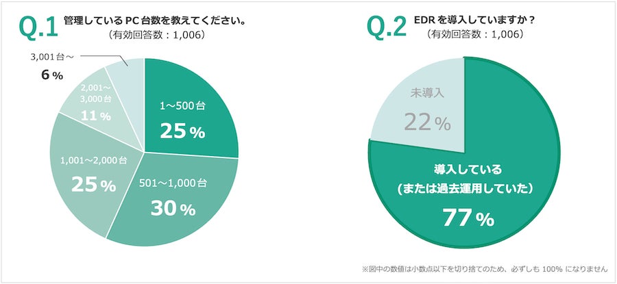 はじめに、企業・組織において管理しているPC台数と、EDRの導入状況についてお伺いしました。