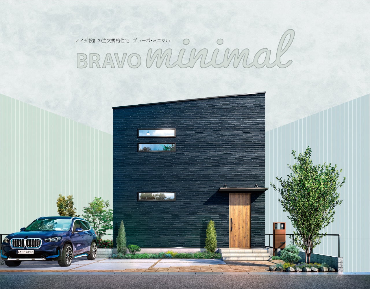 『BRAVO minimal』(ブラーボ・ミニマル)とは、アイダ設計のこれまでの実績をもとに完成させた新しい規格住宅です。 商品名にある「ミニマル」が意味する「最小限」な住宅で、「豊かな生活」を提供することを目指して誕生いたしました。
